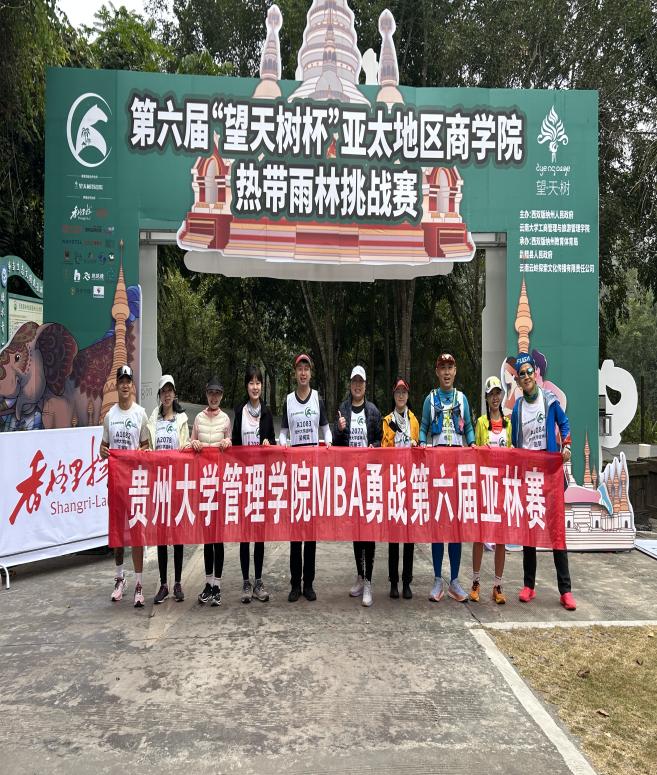 MBA教育中心办公室主任芮丽华老师带队,9名队员组队参赛(MBA1807班吴柯霖、EMBA2011秋季班申霖、MBA2104班刘紫淳、EDP2110班刘娇、MBA2201班谢明珠、MBA2402王家骥、MBA2404班周宛、MBA2407班王一舟及赵黎)。在那片充满奇幻色彩、既神秘又壮美的热带雨林深处,他们用汗水与智慧书写着贵大MBA学子的传奇,一路披荆斩棘,荣耀加身,将“团队第四名”“女子组个人第五名”“马帮奖”“最佳风尚奖”“杰出领队奖”等沉甸甸的奖项收入囊中。